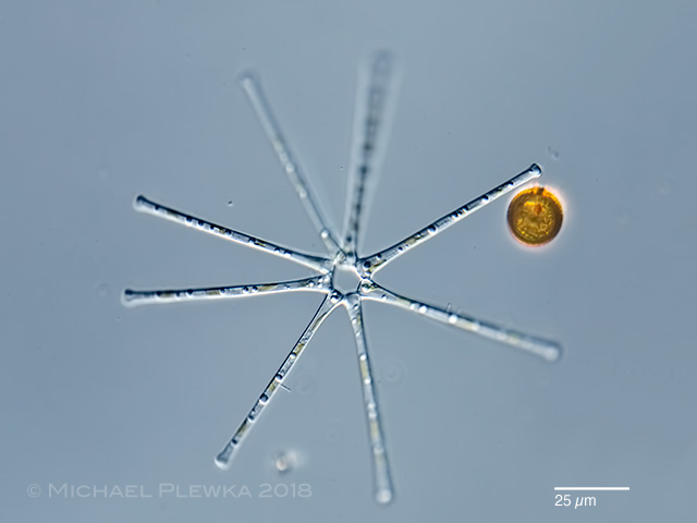 | Schwebesternchen (Asterionella sp.), , zusammen mit Trachelomonas rugulosa(2) |