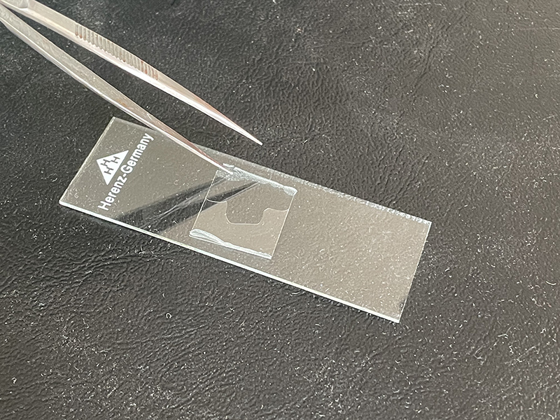 1. The first step is to isolate the animal using a stereo microscope. My isolation process works very well for rotifers. I select interesting animals from a water sample in a small Petri dish (5 cm diameter) at 25x magnification. Over time, you learn to distinguish most genera even at this low magnification. Then, using an Eppendorf pipette, an animal (or even single-celled organisms) is aspirated into 25 µl and placed on a previously well-cleaned microscope slide. A microfiber cloth is very suitable for cleaning because it does not leave any fibers on the slide. Due to the tiny size of the rotifer, it is important that only the rotifer is visible under the cover glass (CG) and no other particles such as algae, remains of small crustaceans, or detritus. For this reason, as little liquid as possible is transferred from the sample at this point, hence the 25 µl. If there are still detritus residues or similar particles in the water drop, add a drop of clean water (I use Volvic) and again use the Eppendorf pipette to suck out the unwanted particles. This step can be repeated as often as necessary. In the end, there should be a rotifer in a drop of approximately 50 µl.