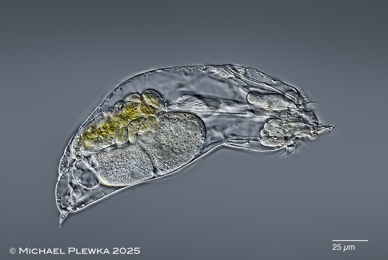 | Encentrum marinum; dorsoventrall view. The arrowheads point to the light-refracting bodies. In contrast to other animals presented here this specimen was found in a freshwater environment. (1) |