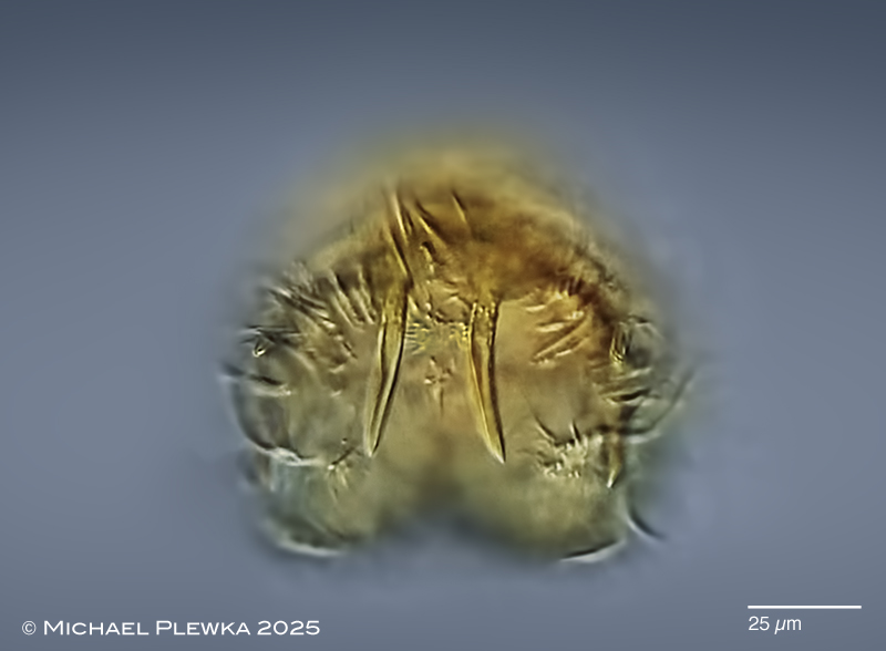 Keratella cochlearis, specimen from (6), optical median section, focus plane on the central red eyespot..
